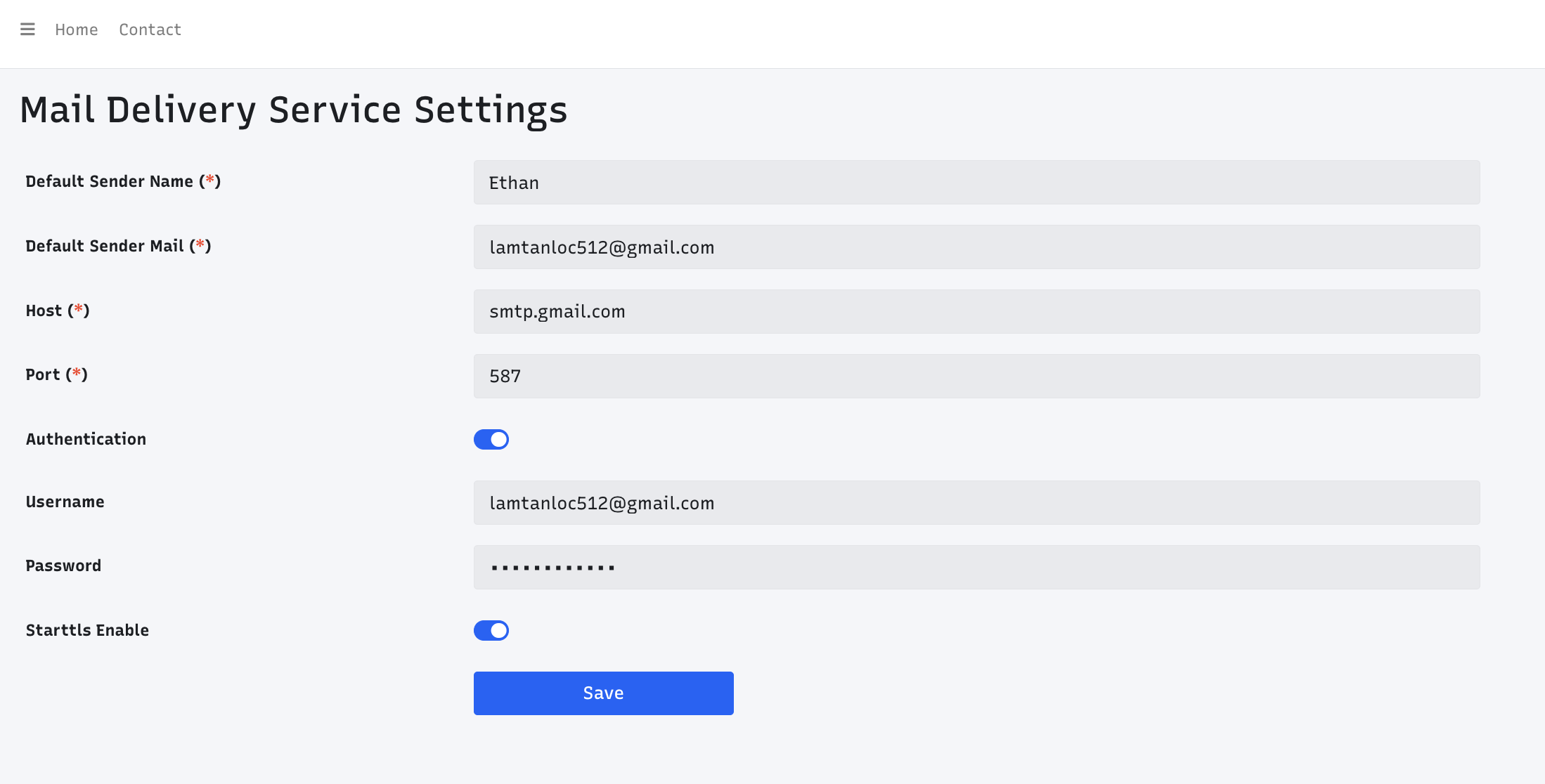 - Phần username, password là dành cho cái mail sender phía trên. Cách để lấy credential là các bạn phải vào gmail, tạo application password. sau đó điền vào đây (tham khảo link)