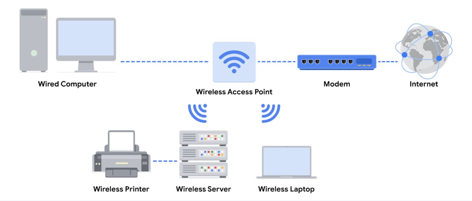 A wireless access point sends and receives digital signals over radio waves creating a wireless network. Devices with wireless adapters connect to the access point using Wi-Fi. Wi-Fi refers to a set of standards that are used by network devices to communicate wirelessly. Wireless access points and the devices connected to them use Wi-Fi protocols to send data through radio waves where they are sent to routers and switches and directed along the path to their final destination.